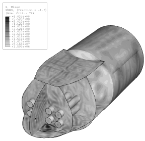 ![]() Figure 15. Mises stress for bow compartments, pressure hull, torpedo tubes, and