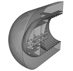 ![]() Figure 5. Cut view of reduced model, including exterior fluid domain.
